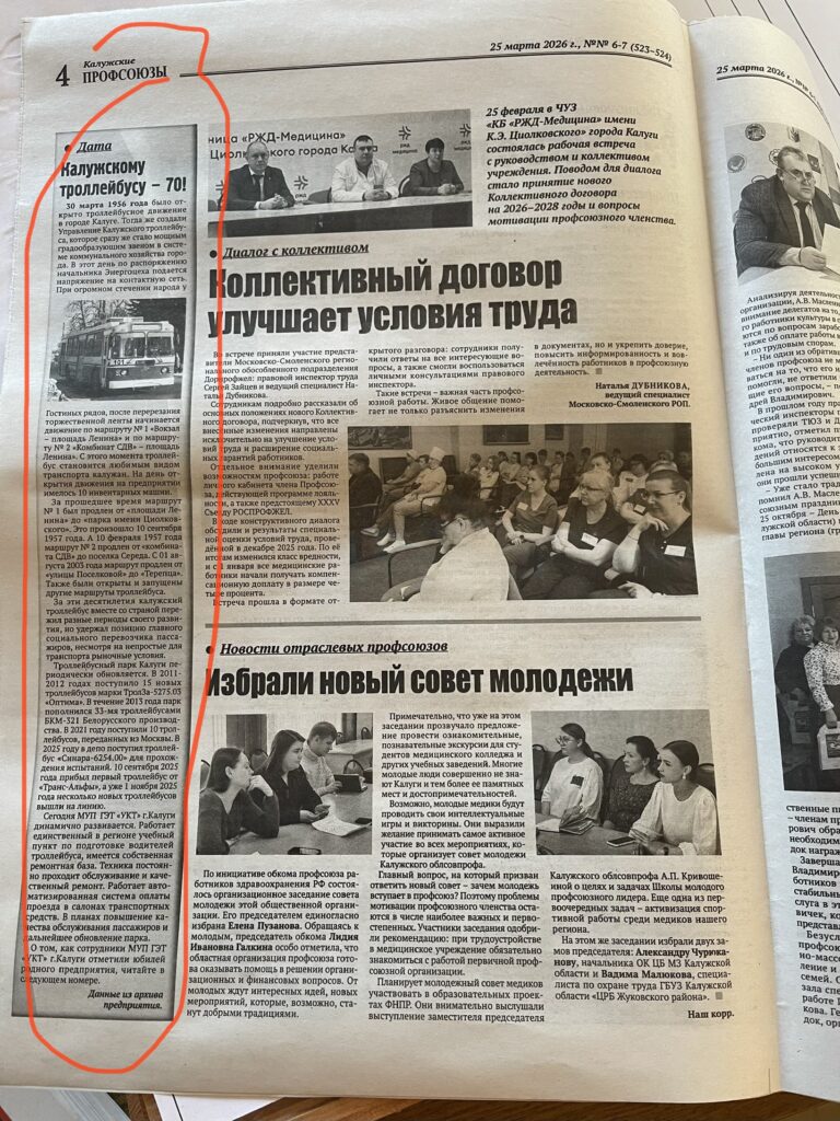 30 марта 2026 год – Юбилейная дата ( 70 лет ) – пуск первого троллейбуса в городе Калуга.
